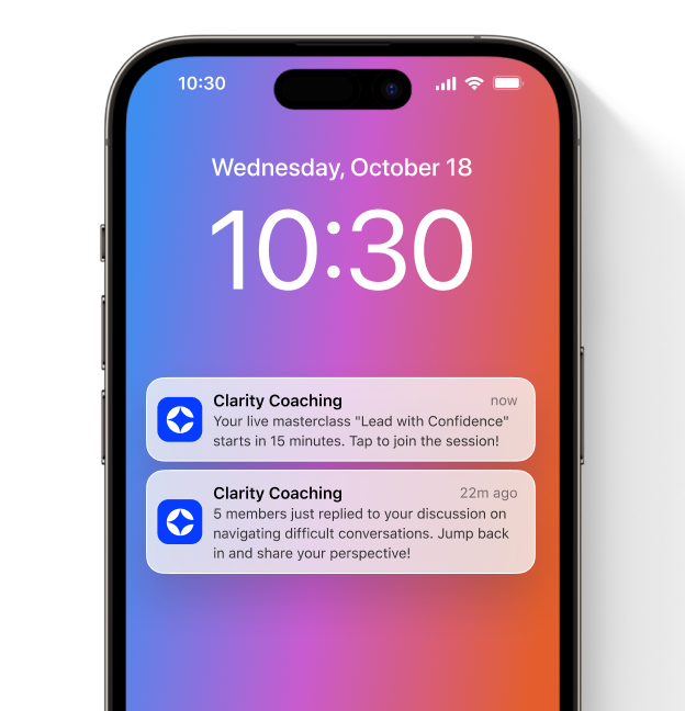 Send branded push notifications for events, updates, and offers that bring members straight back into your community.